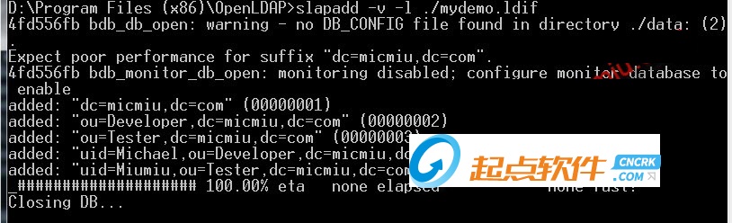 slapadd 只能对本地的LDAP服务进行操作,操作时本地LDAP服务必须先停止