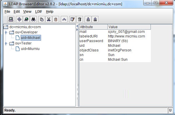 uid=Michael,ou=Developer,dc=micmiu,dc=com