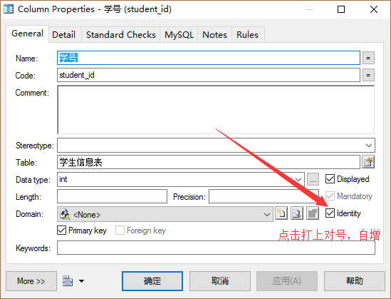 (在此设置学号的自增(MYSQL里面的自增是这个AUTO_INCREMENT),班级编号同理,不作多啰嗦!)