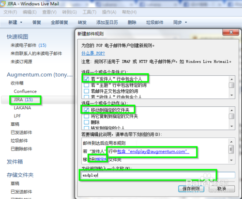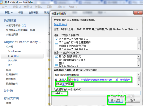 5、 完成配置之后,点击"保存规则"即可.成功添加邮件规则.