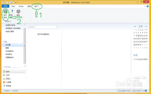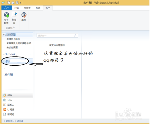 6、回到windows live mail桌面,你就可以看到你已经添加好了的QQ邮箱了,就可以收发电子邮件了。