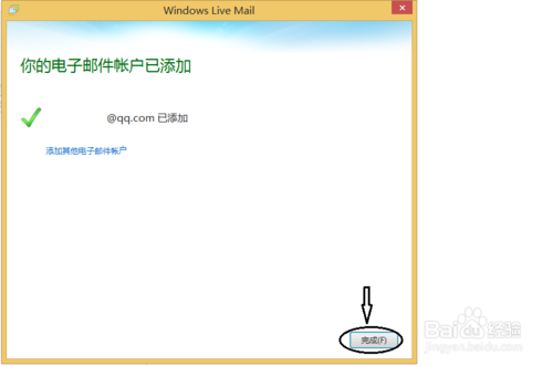5、这一步,你就可以看到信息,告诉你你已经成功添加了QQ邮箱,点完成。