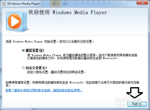2、如果不太熟悉,点选:推荐设置→再点击完成即可。