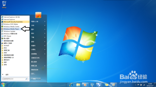 8、如果Windows Media Player图标没有出现在任务栏,可以在开始菜单→所有程序→Windows Media Player