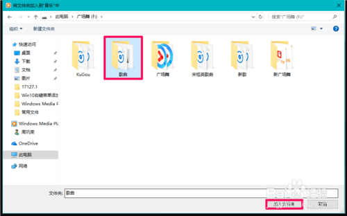 3、在本地磁盘中找到音乐(歌曲),点击:歌曲 - 加入文件夹;