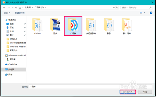 3、在本地磁盘中找到视频(广场舞),点击:广场舞 - 加入文件夹;
