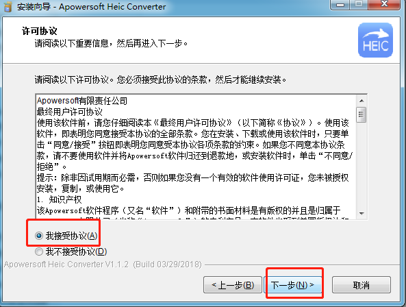 4、勾选接收协议,点击下一步