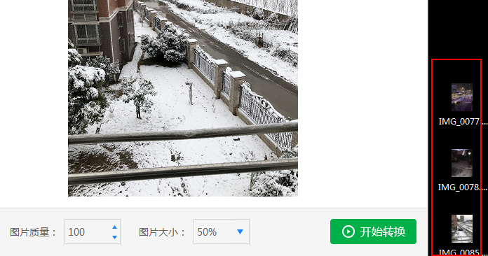 2、图片文件添加完成之后可以设置一下输出格式,以及图片质量、大小等,然后单击开始转换按钮,等一会转换就能完成了。