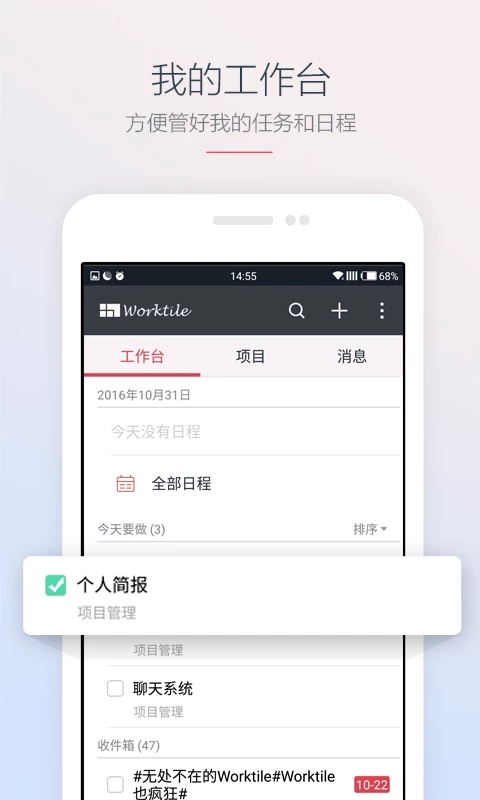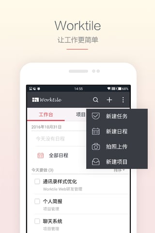 Worktile个人版是一款公司内部使用的协同办公软件,能够让公司内部人员更好的沟通,即时有效的了解上级部门分配的工作和项目实施的进度情况,可以让公司内部更高效化的运作。