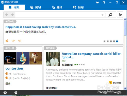 微软必应词典翻译教程首先我们来到微软必应词典的首页上边,首页会推荐我们一些东西,大家简单看看即可