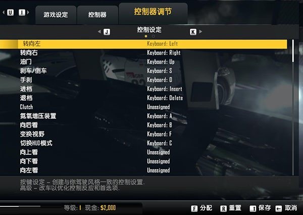 2、在“控制器调节”中,首先将光标移动到要调整的选项上,然后按F,然后再按下你希望设置的键,最后按Shift保存。