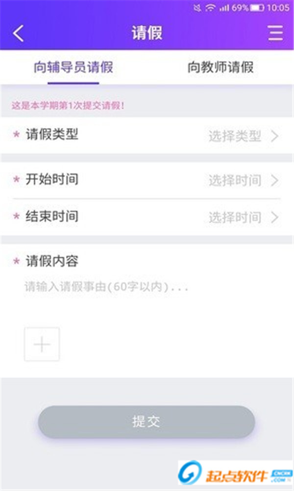 【请假】酷学途app提供快速请假功能,对辅导员和老师一键提交请假申请,快速提交,随时随地快速操作。
