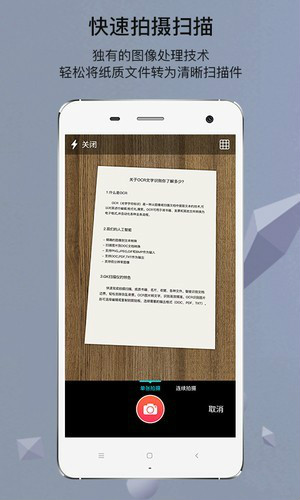 手机拍文档,平面化去除杂乱背景,生成高清JPG图片或PDF文件。