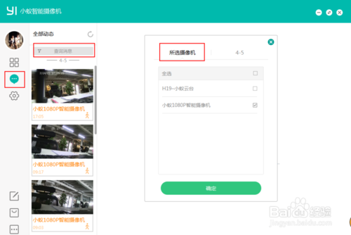 点击左侧的消息按钮即可进入报警消息列表,支持自选设备和时间,最多可看到7天之内的消息。