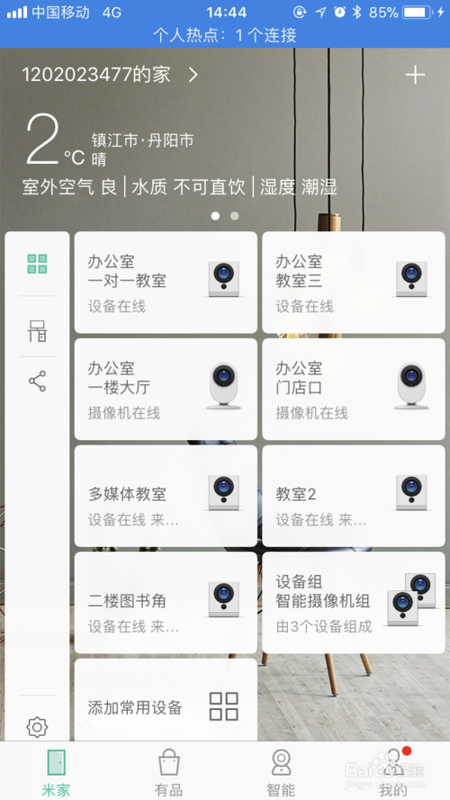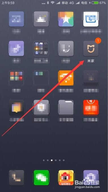 一、小蚁智能摄像机设置自动动态报警的方法在手机上找到已安装好的“米家”app的图标,点击后打开并登录米家