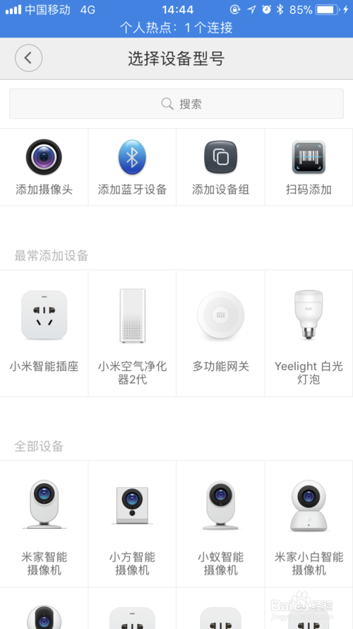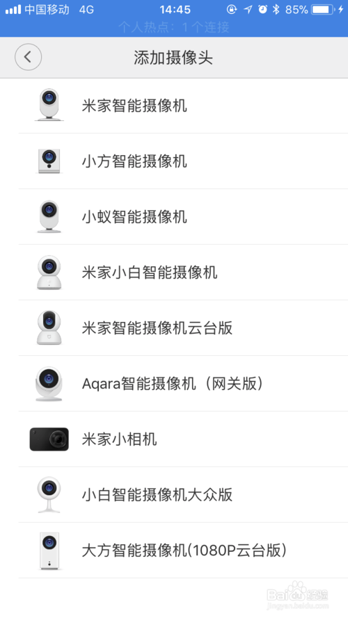 我们下载我们的米家app,登陆后点击当中的右上角的加号,选择添加摄像头,选择我们的小蚁智能摄像机。