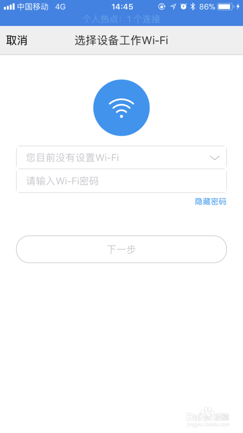 输入我们手机连着的wifi账号和密码。之后点击下一步。之后就是出现一个二维码让我们的小蚁扫描下就开始连接。