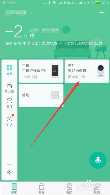 在米家的主界面,点击“智能摄像机”的图标。