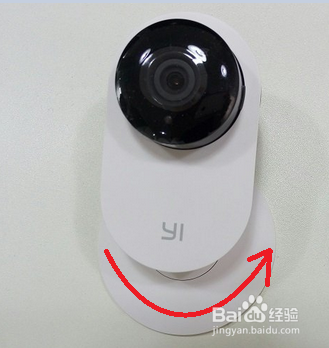 正视小蚁智能摄像头,将底座“逆时针”旋转,即可将摄像头底座与支架分开,如图所示: