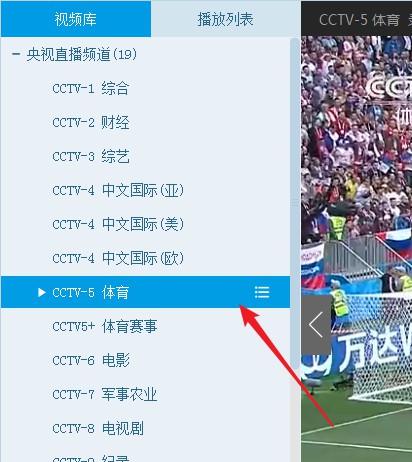 2、打开CCTV5电脑客户端,选择CCTV5频道
