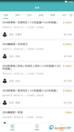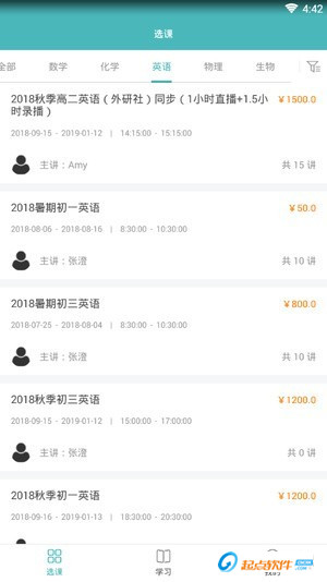 学知味网校app现主要学科为初中数学、英语;高中数学、英语、化学、生物。现在的主要授课模式有两种: