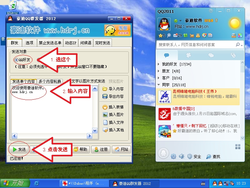 豪迪qq群发器是一款专为帮助QQ用户们打造的一款群发工具软件,豪迪QQ群发软件能够帮助用户们向QQ好友、群、群成员发送文字、图片、文件、离线文件等等,同时支持所有QQ版本,让您群发信息更加方便。
