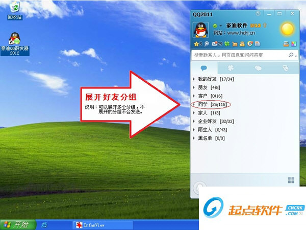 5、如果你只想对某些好友组群发消息,只将这些组展开即可。