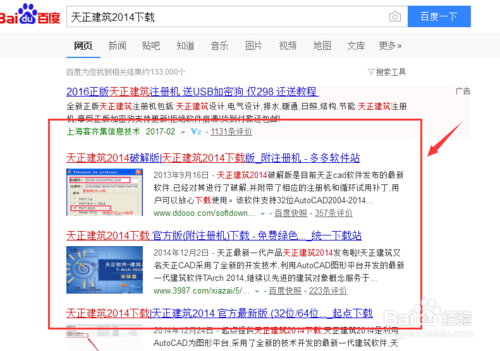 2、安装好AtuoCAD后,在百度搜索“天正建筑2014下载”