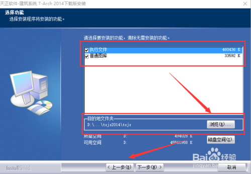 4、随后的“选择功能”中勾选“执行文件”,“普通图库”,选择安装目录后,点击下一步,等待安装完成。