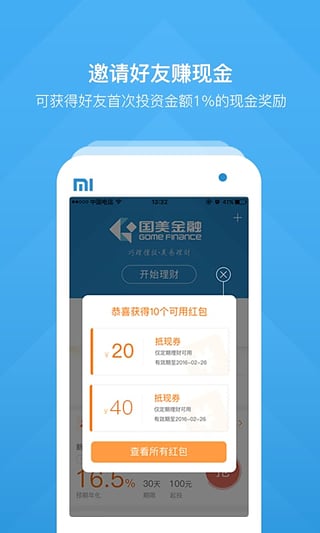 邀请好友注册得红包;邀请好友投资,享好友首投金额1%。邀约不封顶,福利等你领!