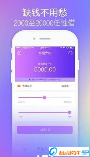 2、额度灵活:小额轻松借,7-14天期限任你选择。