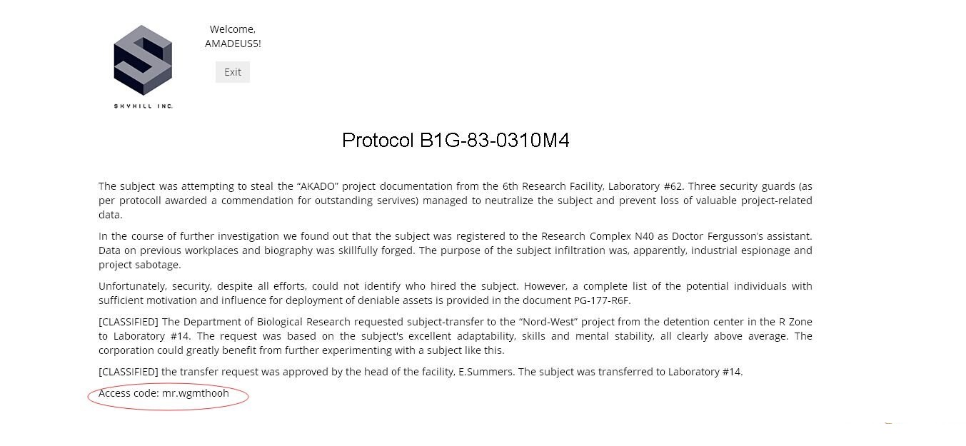 3.湮灭结局:需要之前游戏中遇到一台电脑,点击后发现回收站是有文件的那种状态图标,点击之后,桌面会多出来一个文件,点击之后打开一个打印的窗口,点击OK即可打印出一张有账号密码的文件,这种文件不会随着游戏重开消失,和其他资料一样一直在物品栏左侧那里。这张文件上写着 登陆:AMADEUS5 密码:ShATTEREDRealitY 之后到一层之后,先不要从右边的门出去,点击左侧的电脑,桌面有个叫做mv-17.com的BAT类型文件,点击后会让你输入密码,这时候你需要打开你自己电脑的浏览器(不是游戏中的,是现实中你自己的),输入这个网址 http://mv-17.com ,之后用 登陆:AMADEUS5 密码:ShATTEREDRealitY 来登陆,注意密码的大小写。登陆进去之后会发现如下图的界面: