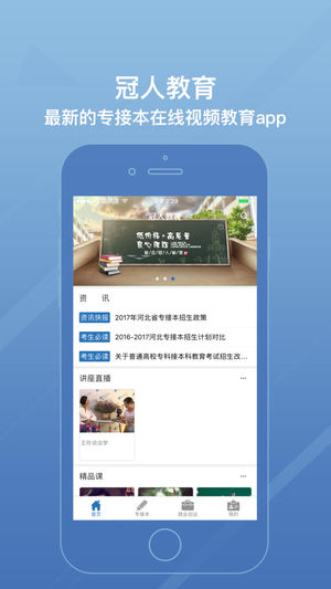 冠人教育iphone版是一款为苹果用户所打造的功能强大的教育培训类软件,用户通过冠人教育可以在家里自主学习。冠人教育为用户提供最新的考试咨询以及练习教程,能够为用户创造一个良好的学习环境。