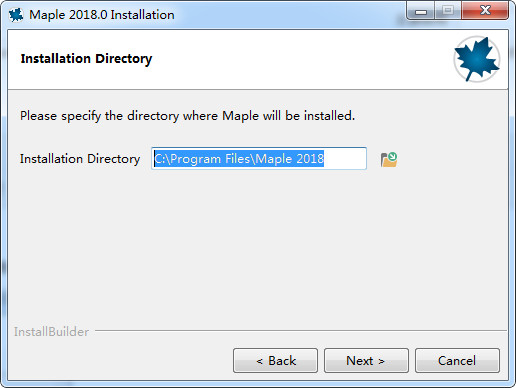 3.选择安装位置,默认路径为“C:\Program Files\Maple 2018”,点击“文件夹图标”可更改目录,但是建议不要更改才好方便等下的破解操作