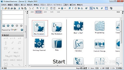 1.打开Maple软件,选择“New Document”,选择“数学”切换到数学模式。