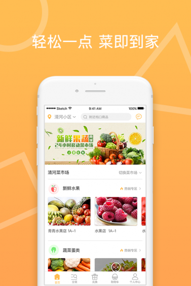 手机网上一键购买新鲜食材,让您足不出户\回家途中轻松逛菜市场。