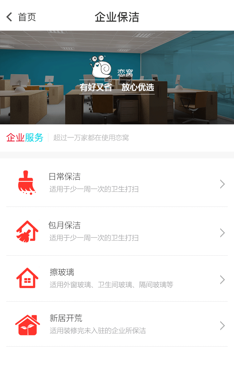 恋窝app一站式家庭生活服务!专注家庭服务,提升生活品质。家庭服务应有尽有,注册会员立享优惠!恋窝服务覆盖60多项家庭生活服务,提供专业的保洁服务、废品回收、家具家电回收、维修安装,搬家服务、居家换新等家庭生活服务。