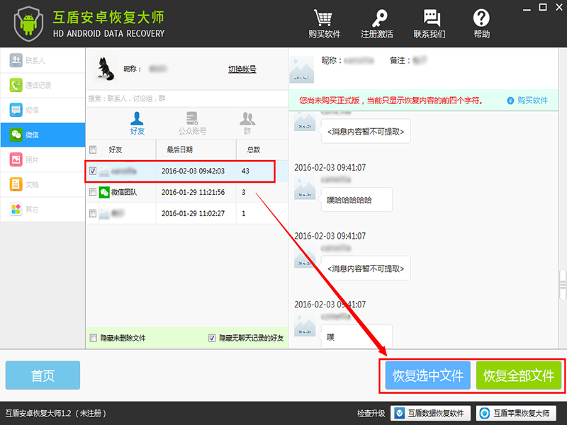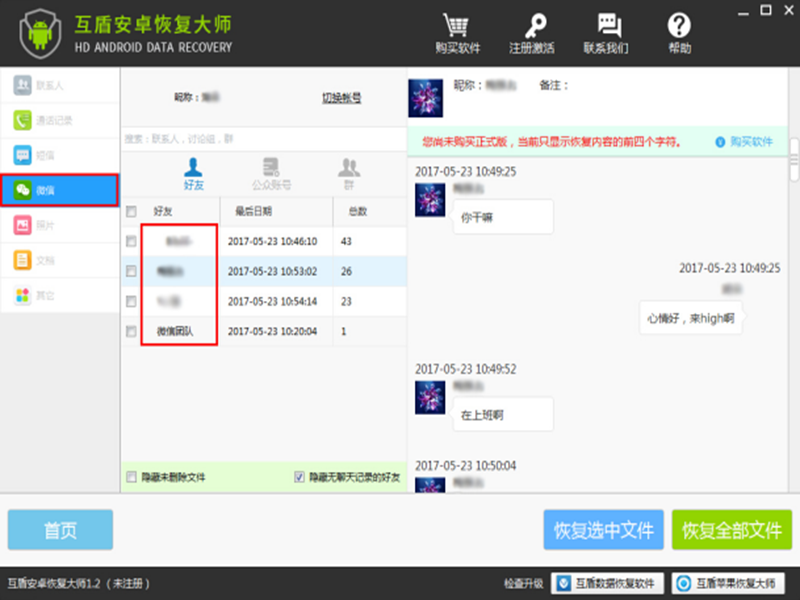通过互盾安卓恢复大师,可以在免ROOT的情况下,恢复手机微信聊天记录。同时也建议大家,平时多备份手机数据,重要数据应妥善备份好。