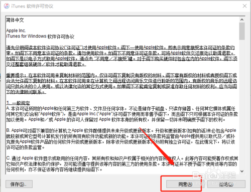 1、我们首次启动itunes,软件将会弹出使用协议,点击同意按钮,如下图所示