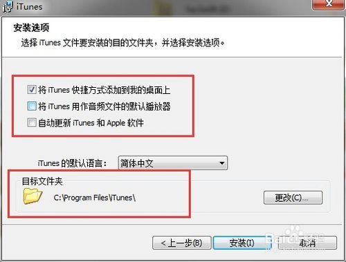 5、安装目录最好选择默认的C盘,不要修改。安装选项也要设置清楚。