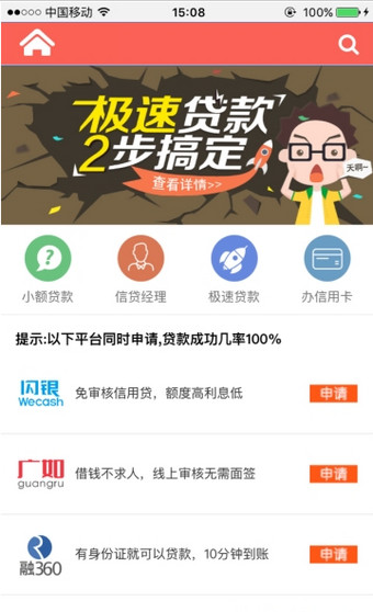贷贷app是一款非常靠谱的互联网贷款平台,专为个人及中小企企业提供贷款业务,通过该平台你可以直接进行贷款,放款速度十分快,无需复杂是手续与抵押证明,利息十分低,全过程通过手机即可操作。