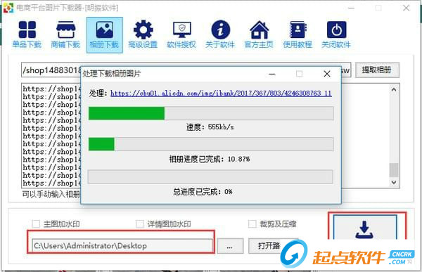 二.把公司相册的链接复制到电商平台图片下载器软件中的相册下载框;