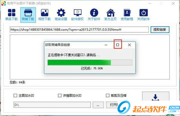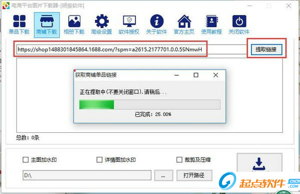 二.把首页的链接复制到软件的商铺下载的链接框中,并单击“提取链接”按钮