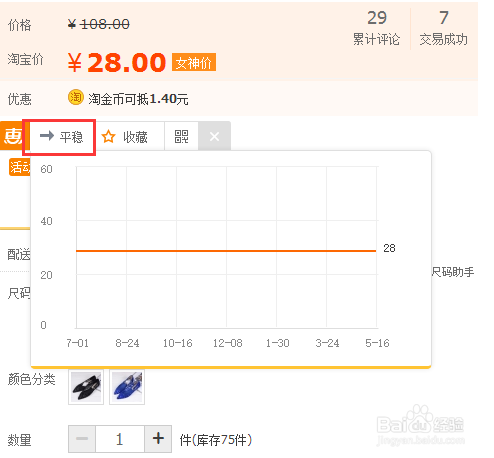 5、返回到淘宝这个产品的页面,重新刷新一遍,就能看到页面中出现了价格对比图。说明启用成功了。