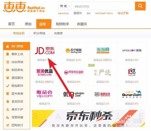 4、选择京东商城,查看京东返利详细信息。