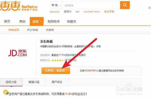 5、点击去购物拿返现,跳转到京东商城。
