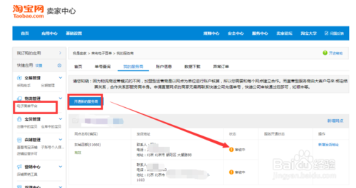 1、有一个淘宝账号,不论是买家或者是卖家账号都可以。之后点开卖家中心--电子面单平台--申请开通电子面单服务。