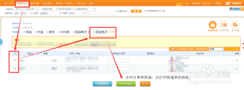 9、点中批量打印点查询,点中订单和快递,点打印。打印出纸无误再点发货按钮即可。