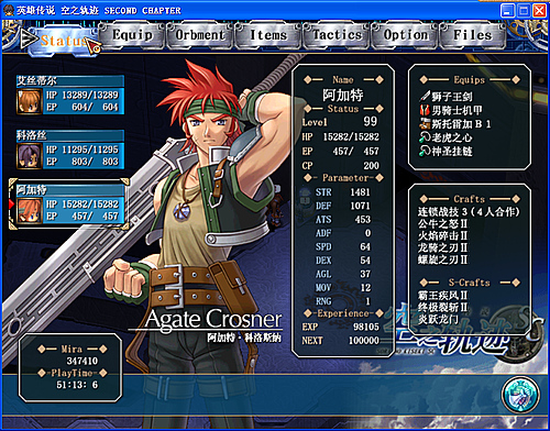 (5)好好利用SC的钓鱼系统(钓鱼资料参见我签名中另一帖)。第八章善于钓鱼可以获得巨量耀晶片。前五章先弄到几条黑鲑或鲑鱼留着(等到第八章再准备也可以),第八章一开始就南下湖畔钓起湖之主霸王红鲑(必要时用S/L大法),获得特级钓师认定证,然后去王都的钓公师团便可以购买所有种类的鱼饵(不包括可作饵的鱼)。有些种类的鱼会吐很多的耀晶片,可参考钓鱼资料选择购买合适的鱼饵到特定钓点钓取。