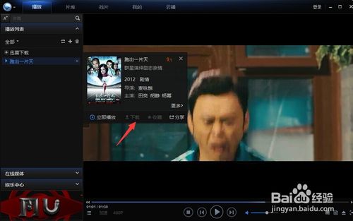 点击正在播放的电影名后,出现选项,我们可以看到并点击“下载”。